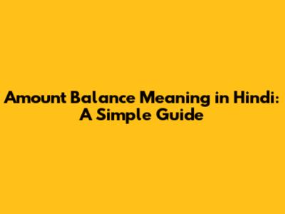 Amount Balance Meaning In Hindi: A Simple Guide