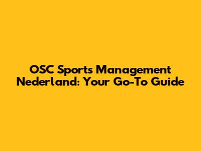 OSC Sports Management In The Netherlands: Your Comprehensive Guide