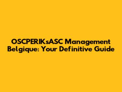 OSCPERIKsASC Management In Belgium: A Comprehensive Guide